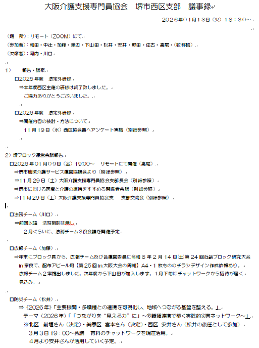 『令和元年度 大阪介護支援専門員協会堺ブロック合同総会・総会記念講演会』報告