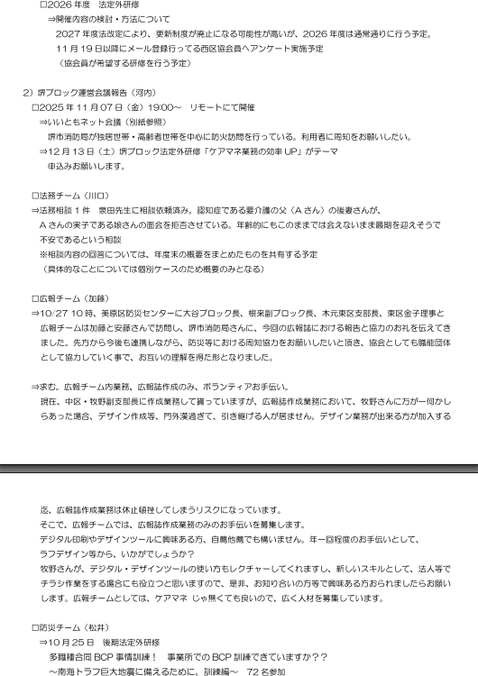 ⇒2024 年度 西区支部役員について。数名の変更予定。